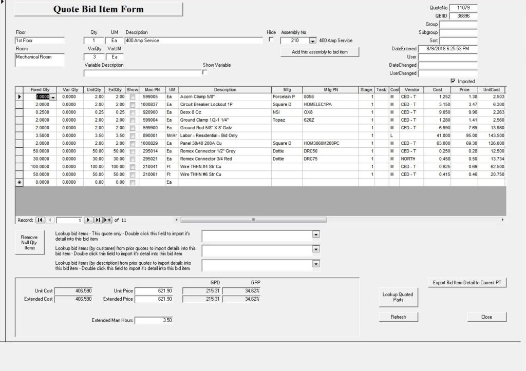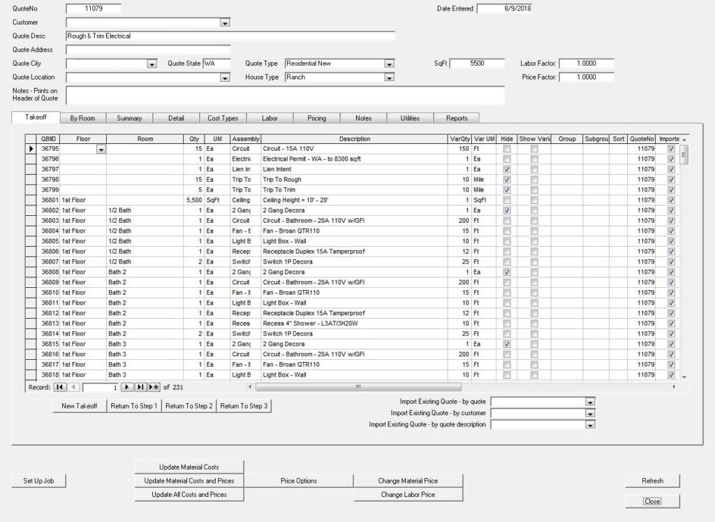 This is an example of a custom database, designed to help businesses create detailed job estimates and manage projects effectively.