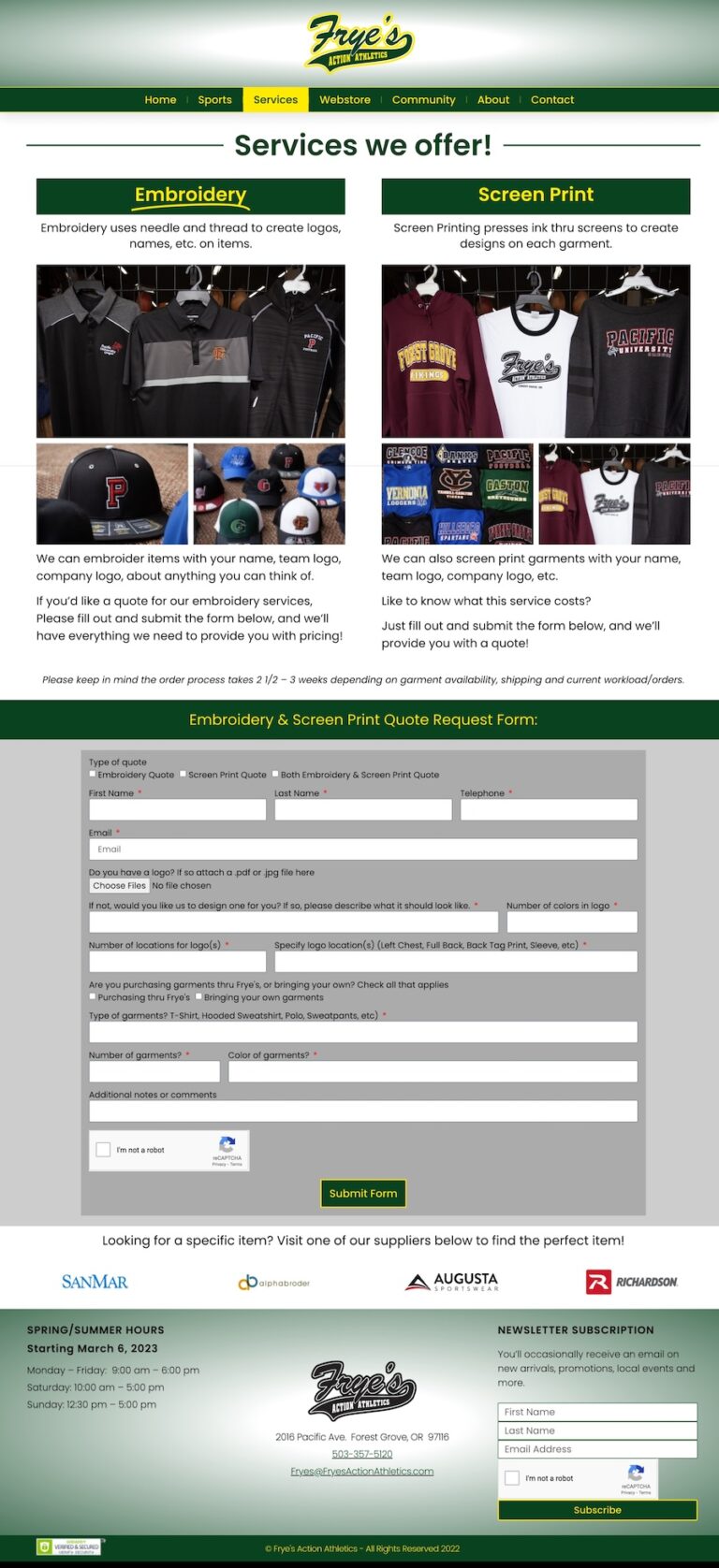 It also provides a simple form that customers can fill in and provide all the information Frye’s team needs to generate a quote for the service.