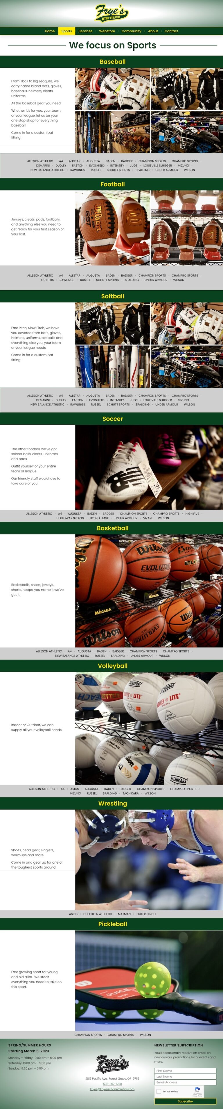 This secondary page provides customers with a glimpse into Frye’s store and showcases brands they supply.
